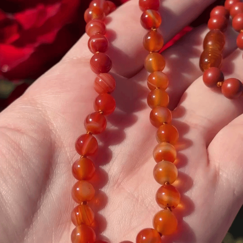 Ágata Cornalina y Jaspe Rojo naturales - Cuentas 6mm - Anudado artesanal - Hilo reforzado - Cierre a rosca - Hipoalergénico.