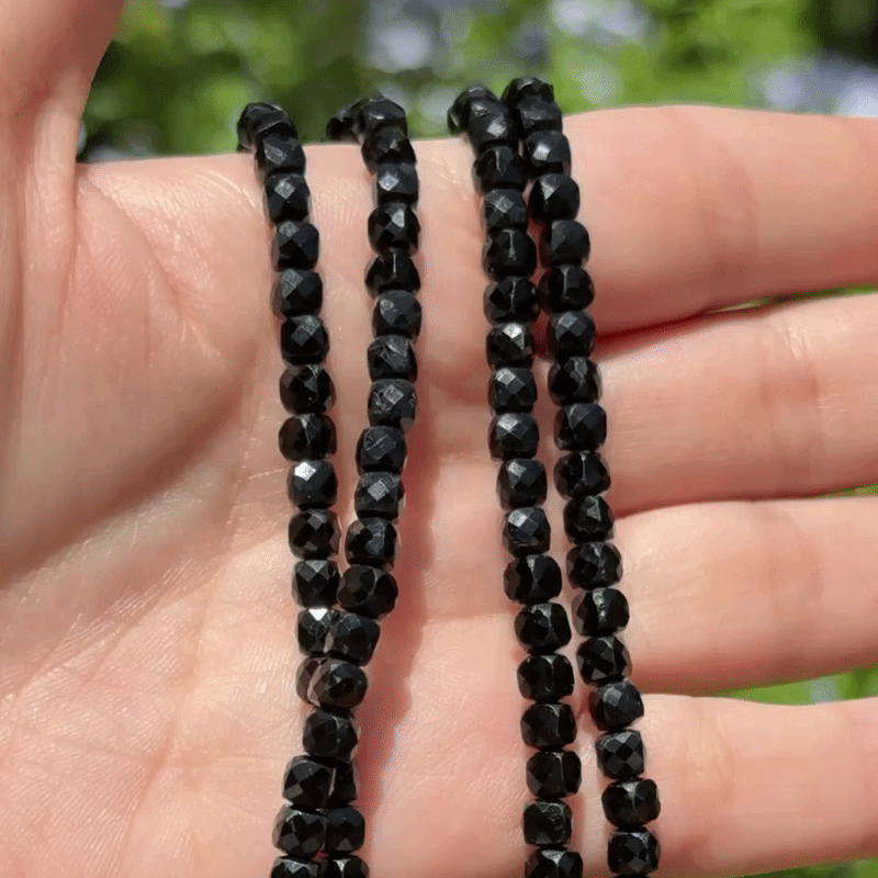 Turmalina Negra de Brasil - Cuentas 5mm facetadas - Hilo reforzado - Cierre a rosca - Hipoalergénico.
