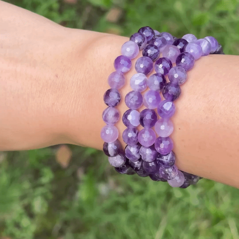 Amatista chevron natural facetada - Cuentas 8mm - Tanza elástica reforzada - Hipoalergénico